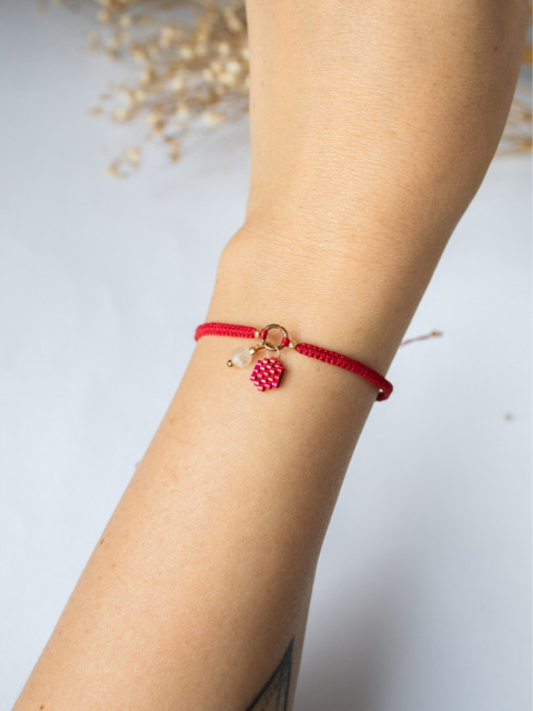 • Materiał: Bransoletka została wykonana z najwyższej jakości czerwonego sznurka, który jest trwały i odporny na codzienne zużycie. Jego intensywny kolor dodaje energii i charakteru każdej stylizacji.